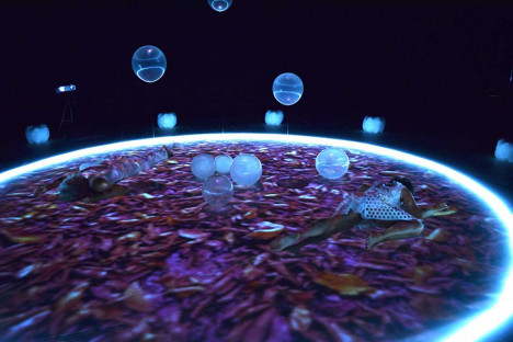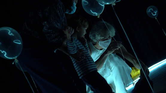 El público se sitúa 360 grados alrededor de la acción, en un lugar donde cada familia es acompañada individualmente por los intérpretes a modo de invitación al rito. Todo el espacio es voluble y cambiante, todo el concepto estético de la propuesta se basa en el movimiento: objetos, imágenes e intérpretes interactúan para generar una propuesta dinámica que invita a la atención y la concentración.