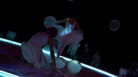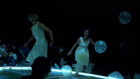 Mímesis es un ritual escénico iniciático para la primera infancia y sus familias que aprovecha las posibilidades de las nuevas tecnologías y el vídeo-mapping para ofrecer un espectáculo participativo donde la danza, lo visual y el espacio sonoro configuran la puesta en escena.
